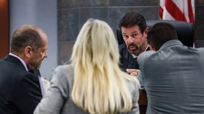 Judge Amy "JoAnne” Chelini, right, listens as UFC fighter Nick Diaz attorney Ross Goodman delivers his statement during a prelim -