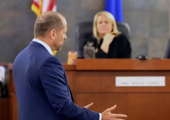 Judge Amy "JoAnne” Chelini, right, listens as UFC fighter Nick Diaz attorney Ross Goodman delivers his statement during a prelim